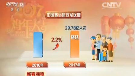 中國(guó)雞年春節(jié)七天假期,帶動(dòng)的是40天的大遷徙。國(guó)家發(fā)改委、交通運(yùn)輸部等部門預(yù)測(cè),2017年中國(guó)春運(yùn)旅客發(fā)送量將達(dá)29.78億人次,同比增長(zhǎng)2.2%。其中,道路25.2億人次,增長(zhǎng)1%;鐵路3.56億人次,增長(zhǎng)9.7%;民航5830萬(wàn)人次,增長(zhǎng)10%;水運(yùn)4350萬(wàn)人次,增長(zhǎng)2%,近十年春運(yùn)交通數(shù)據(jù)幾乎年年創(chuàng)新高,說(shuō)明春運(yùn)規(guī)模在逐年擴(kuò)大。