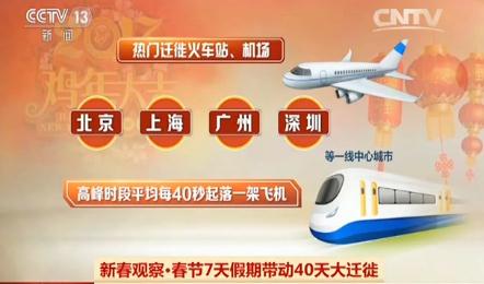 而熱門遷徙火車站、機(jī)場(chǎng)集中在北京、上海、廣州、深圳等一線中心城市,高峰時(shí)段平均每40秒起落一架飛機(jī)。