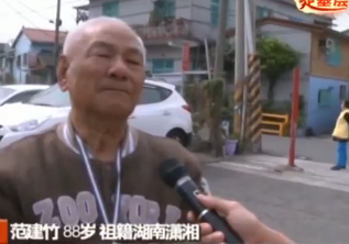 范建竹(88歲 祖籍湖南瀟湘):“ 哦,那當(dāng)然是大陸。我不要講,我講就要流眼淚,我們這些老兵啊都認(rèn)為大陸不錯(cuò),不只我一個(gè)人,包括身邊男的、女的,尤其像我們這些外省籍,沒(méi)有不想家的、沒(méi)有。”