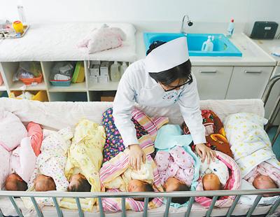 全面放開二孩政策以來,很多高齡婦女加入了生二孩的隊(duì)伍,各地醫(yī)院產(chǎn)科迎來嬰兒出生潮。圖為春節(jié)前夕,湖北襄陽(yáng)第一人民醫(yī)院產(chǎn)科護(hù)士在護(hù)理新生兒。