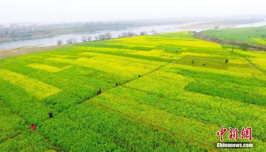 2017年2月3日,當(dāng)日立春。航拍下的江西省新余市渝水區(qū)新溪鄉(xiāng)萬畝油菜花基地風(fēng)光秀麗,金燦燦的花朵陸續(xù)綻放迎春。隨著氣溫逐漸回升,江西省各地鄉(xiāng)村花開遍野、黃綠相間、鴨群戲水,吸引眾多游客前往踏青賞花,采擷春光。 趙春亮 攝