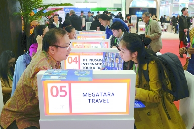第十二屆中國出境旅游交易會上,參會者在咨詢出境游的相關事宜。大飛攝 光明圖片/視覺中國