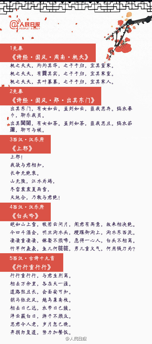 “愿得一心人,白頭不相離”,“從此無心愛良夜,任他明月下西樓”,“一川煙草,滿城風(fēng)絮,梅子黃時雨”……