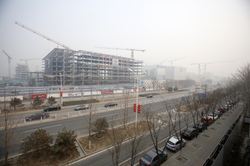 起重機、大吊車、匆忙穿梭的工人……副中心行政辦公區(qū)建設工地上,一派繁忙。正在施工的樓宇框架上,排排紅色條幅“世界眼光、國際標準、中國特色、高點定位”格外顯眼。