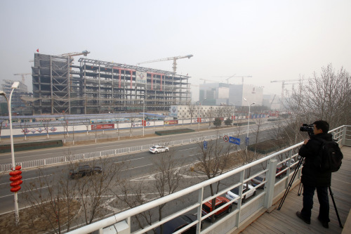 在行政辦公區(qū)施工工地,現場講解員劉蕊介紹,北京市委辦公樓將汲取古建筑的特色,以米黃色、坡屋頂為主要風格;北京市政府大樓將更彰顯“京味兒”,如外墻的灰色取自老北京四合院古城墻的顏色。
