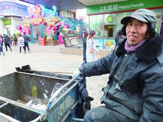 這是他一天當(dāng)中的第二份工作,從下午1時(shí)開(kāi)始上班,晚8時(shí)30分才能到家吃上一口熱乎飯。他是中街步行街的“美容師”,負(fù)責(zé)的范圍約有2000多平方米,地面一片紙屑他都不放過(guò)。記者跟隨趙永久走了一圈,整整一個(gè)小時(shí),滿(mǎn)滿(mǎn)一大車(chē)?yán)_@條路,他一天要走六七趟。步行街上有30個(gè)垃圾桶。算下來(lái),他一下午要掏數(shù)百次垃圾桶。