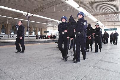 民警將嫌疑人押解回濟(jì)。(警方供圖)