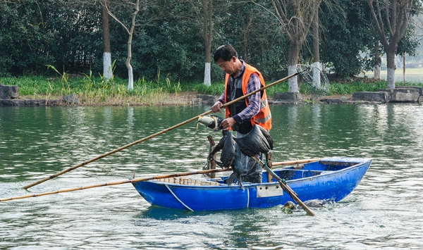 浙江在線寧波2月21日訊(浙江在線記者 王凱藝 通訊員 朱嬌嬌 陳秦 邵曉豪)一支由28只鸕鶿、3艘船只組成的生態(tài)捕魚小分隊(duì)一早就開始了一天的工作,在專業(yè)人員的吆喝下,只見一只只鸕鶿紛紛下水捕魚,不一會兒鯉魚、草魚等各種魚被捕撈上來,養(yǎng)護(hù)公司許工告訴記者,這些鸕鶿很是給力,還捕獲了一條10來斤的大鯉魚。