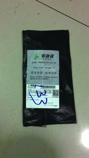 張先生稱,最近一次收到來歷不明的快遞是在2月19日,“快遞現(xiàn)在還放在家里,我也沒打開看。摸著里面軟軟的,挺惡心的,也不敢打開看。”記者從張先生提供的照片中看到,一個黑色塑料袋,上面貼有快遞單,顯示是宅急送快遞公司派送(如圖)。