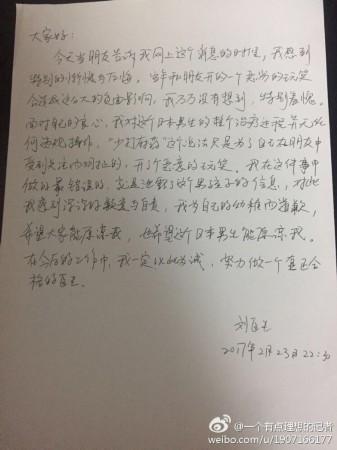 在對話結(jié)束后,劉醫(yī)生再次給我補充了一句話:“希望你能幫我澄清下,我為自己的幼稚道歉,整個治療過程肯定是沒任何問題的,但是就是為了自己幼稚的想法,開了個惡劣的玩笑,對不起,希望大家能原諒我,也希望那個日本男生能原諒我!