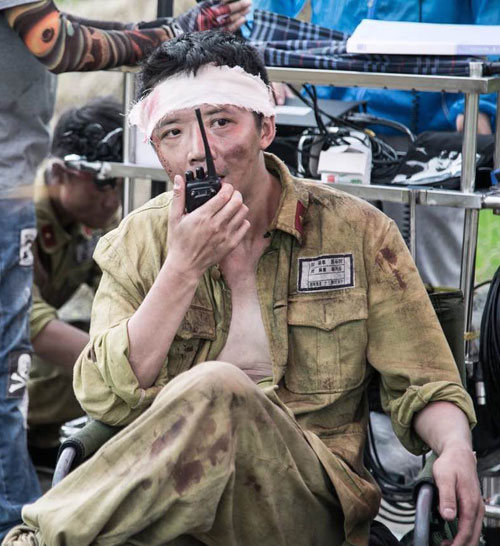 要完成電影剩下的另一半也并不輕松。拍攝老兵與戰(zhàn)友在戰(zhàn)場(chǎng)上浴血?dú)车膽驎r(shí),何一錚幾乎將小鎮(zhèn)上所有的青壯年都找來(lái)了,他自己和劇組成員也紛紛“披掛上陣”充當(dāng)群眾演員。