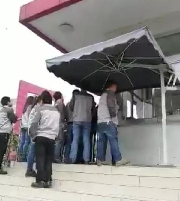 一直到周一,工人們準(zhǔn)備正常返廠區(qū)工作時(shí),卻被保安攔在門外,最終經(jīng)過一番理論,大家好不容易進(jìn)入廠區(qū),卻又被告知不能進(jìn)入生產(chǎn)車間,只能待在工廠的另外一處房間內(nèi),可以抽煙喝水,不被安排任何工作。