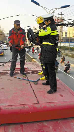 事件:一捆架在半空的電纜脫落,導致勝利北街交通堵塞數(shù)小時,在交警、消防官兵、熱心市民等人的共同努力下,9時左右路面逐漸恢復暢通。