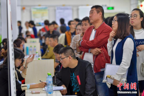 資料圖:2月8日,2017年海南省新春首場特大型招聘會(huì)在海南省人力資源市場舉行,吸引了眾多求職者前來入場求職。中新社記者 駱云飛 攝