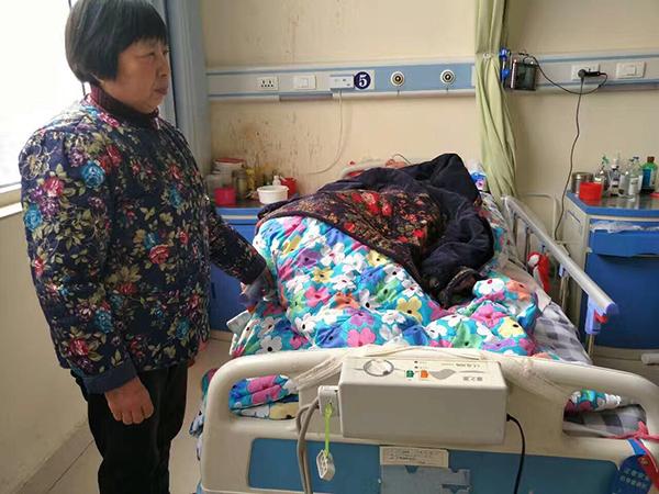蔣女士和她躺在病床上的兒子孫桂軍。