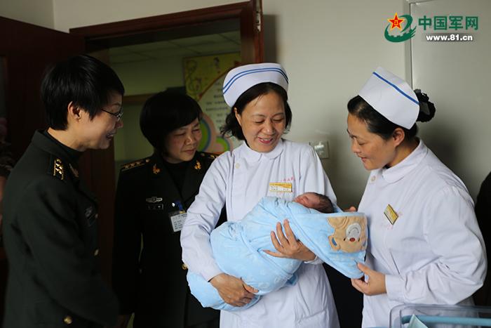 新生兒降生后,第31集團(tuán)軍和該團(tuán)領(lǐng)導(dǎo)第一時(shí)間前來探望,醫(yī)院領(lǐng)導(dǎo)和醫(yī)護(hù)人員也為林紅艷母子送上問候和祝福!澳愫蛷埡频暮⒆泳褪沁@個(gè)團(tuán)隊(duì)的孩子,我們一起把他撫養(yǎng)成人!”該團(tuán)政治處主任黃昭明深情地說。