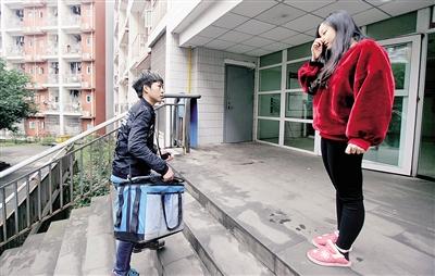 毛召木負(fù)責(zé)送餐的區(qū)域位于川外山頂,部分寢室由于摩托車無(wú)法到達(dá),只能步行前往。每天的用餐高峰時(shí)間,毛召木平均送出60多份外賣。