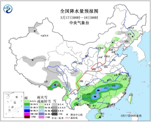 中新網(wǎng)3月17日電 據(jù)中央氣象臺網(wǎng)站消息,受南支槽東移加強(qiáng)影響,預(yù)計17日至20日,江南、華南等地將有一次較強(qiáng)降水天氣過程,雨量普遍在中到大雨,其中,廣西大部、廣東西部、湖南中部、江西中北部等地的部分地區(qū)有大到暴雨。