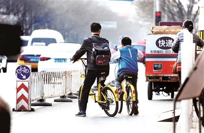 針對小學(xué)生騎共享單車上馬路的問題,北青報記者采訪了多家學(xué)校。一些老師表示,雖然沒發(fā)現(xiàn)孩子單獨騎車上下學(xué)的情況,但確有部分家長隨行孩子騎共享單車上下學(xué)。