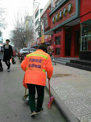 “垃圾也有家 請(qǐng)莫亂扔它”、“講文明,講文明,講文明,重要的事情說三遍”……3月18日上午,記者在漯河市中心街道上看到,進(jìn)行清掃作業(yè)的環(huán)衛(wèi)工人背上都貼上了“萌萌”的標(biāo)語,不少市民駐足觀看甚至拿出手機(jī)拍照留念。記者了解到,這是漯河市源匯區(qū)馬路街環(huán)衛(wèi)站的一項(xiàng)工作創(chuàng)舉,希望市民能更自覺的做到講文明。