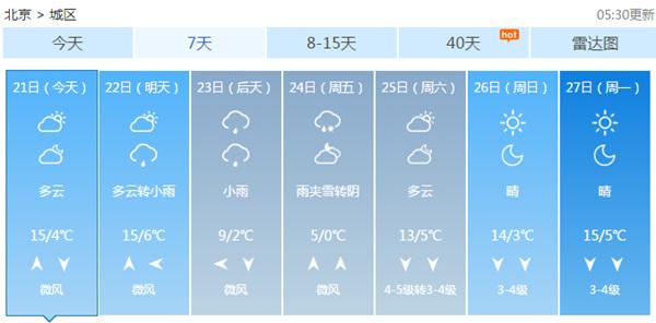 上周的北京暖意融融,春天似乎已經(jīng)近在咫尺,然而昨日的一場冷雨,打亂了北京進(jìn)入氣象意義上春天的步伐。根據(jù)未來7天天氣預(yù)報,北京本周仍以多云到陰為主,周三、周四、周五或還有降水天氣過程,其中周五的最高氣溫或降至5℃,最低氣溫則有可能被打回0℃,寒意明顯。
