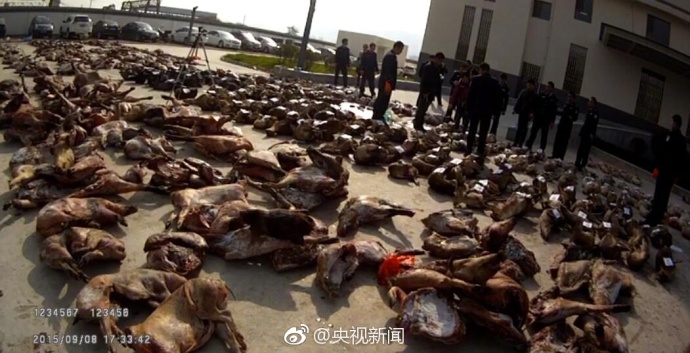甘肅、陜西公安近日破獲一起非法獵捕、販賣野生動(dòng)物案,查獲果子貍、野豬、赤麂等14種1025只,其中瀕危野生動(dòng)物鬣(liè)羚、斑羚共5只。不法分子偷獵野生動(dòng)物后,冷庫藏尸,定期向四川等地販賣。(央視記者張鵬軍)