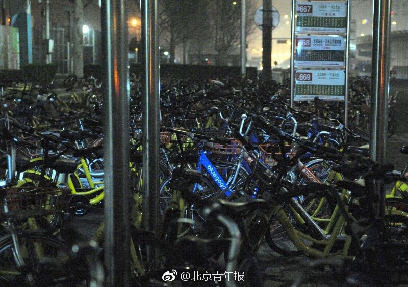 據(jù)北京青年報官方微博報道,22日晚高峰后,CBD的北京八王墳東公交車站被上千輛共享單車“圍困”,長達百米的公交站區(qū)域被多個“單車群”占據(jù)。北青報記者夜間探訪發(fā)現(xiàn),眾多單車已停在了行車道上,部分單車因影響公交車出站,被人扔進了“車叢”中。除某一家公司的部分單車,疑似有人整理或?qū)iT投放于此,其他幾家公司的單車停放較為雜亂。但各公司的車均占據(jù)了站臺、人行道和行車道,嚴重影響公交進出站。