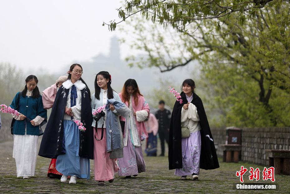 3月25日,近百位身著漢服的年輕人和三百多位市民從南京明城墻解放門段出發(fā),沿著太平門、中山門、武定門、中華門、集慶門等前行,一路欣賞六百年明城墻內(nèi)外景致,參與詩(shī)詞大會(huì),詠春賞花感受濃濃春意。 泱波 攝