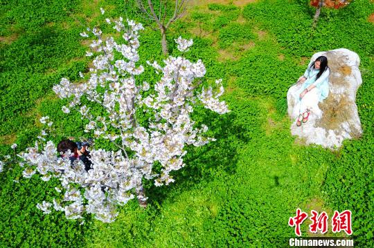 一位游客拍攝“櫻花照”!≈苄橇痢z