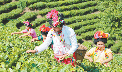 圖為大益集團(tuán)巴達(dá)生產(chǎn)基地,布朗族群眾開采春茶。