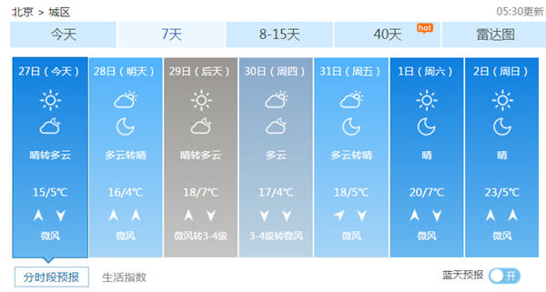 昨天開始,北京告別陰冷天氣,氣溫開始回升。北京市氣象臺預(yù)計(jì),未來三天仍將以晴到多云天氣為主,氣溫緩慢回升;不過28日夜間至29日白天擴(kuò)散條件略有轉(zhuǎn)差。