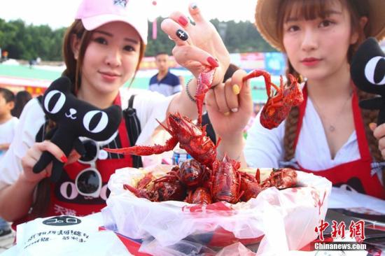 資料圖:網(wǎng)絡美女主播現(xiàn)身龍蝦宴,線上直播吃龍蝦。 李珂 攝