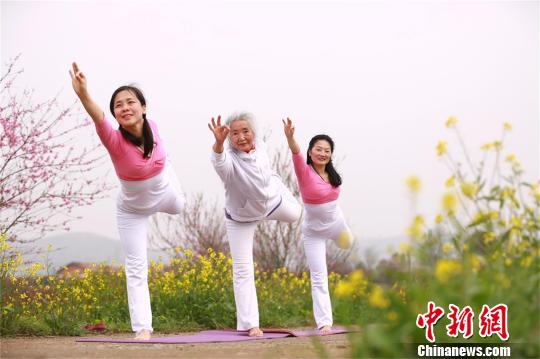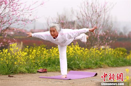 中新網(wǎng)襄陽(yáng)3月29日電(周政 丁心栓)從61歲接觸瑜伽至今,湖北襄陽(yáng)75歲老太康光英練就了一身硬本領(lǐng)。羅漢睡式、鶴式、駱駝式、肩倒立式……瑜伽中的幾個(gè)高難度動(dòng)作,她施展起來(lái)毫不費(fèi)力,還能輕松劈下“一字馬”。
