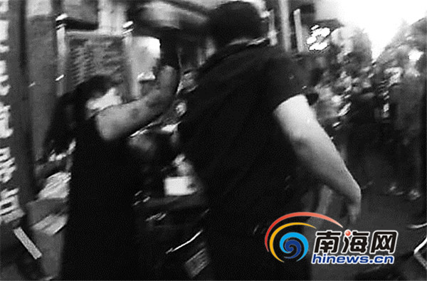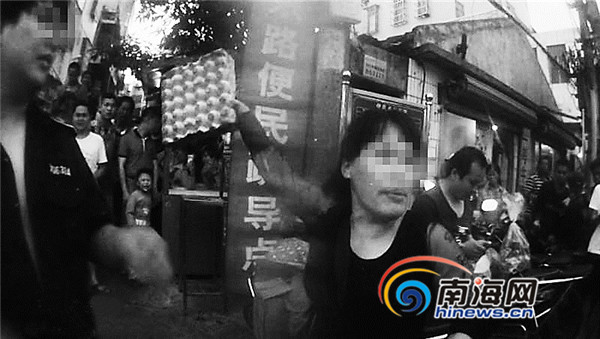原標(biāo)題:占道經(jīng)營后 海口女?dāng)傌湴褍扇倜峨u蛋砸向城管