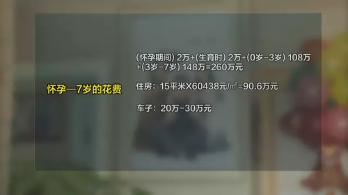 這樣算下來(lái),從懷孕到二寶蘭熙7歲幼兒園畢業(yè),張亞英一家需要付出的費(fèi)用大約是260萬(wàn)元,而這還是在車子、房子都已經(jīng)提前解決的情況下,如果沒(méi)有解決,至少還要多付出一百多萬(wàn)元。