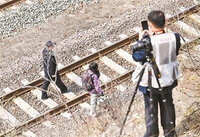 鐵警將進(jìn)入鐵路的攝影愛好者勸離