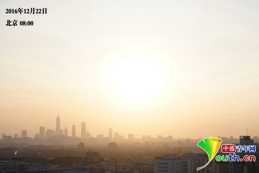 2016年12月22日,整個北京籠罩在濃重的霧霾之中。中國青年網(wǎng)記者 李正穹 攝