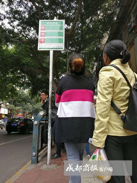 7日中午,一女子在“中醫(yī)醫(yī)院”站牌下仰望了約半分鐘才離開,“怕坐錯車,但是站牌上的字看起來有點吃力!庇浾邷y量后發(fā)現(xiàn),“中醫(yī)院”站高約3.39米,旁邊一位交通引導(dǎo)志愿者告訴記者,他在這個站牌下待了一年了,“每天都有人跟我問路,因為看不清站牌上的字。”他表示,問路的多是老年人,“多的時候一天有十多個。”