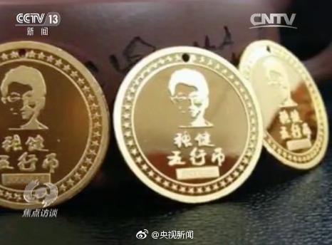 這就是五行幣,據(jù)說純金制造。一面是頭像,刻著張健五行幣字樣,下面有一組數(shù)字編號,另一面是些裝飾圖案,看起來并沒有什么神奇之處。怎么就能夠5000元買上一枚,一年就能達到400萬元呢?參與者們說,這五行幣可了不得,因為在這背后連帶著的是數(shù)字貨幣。