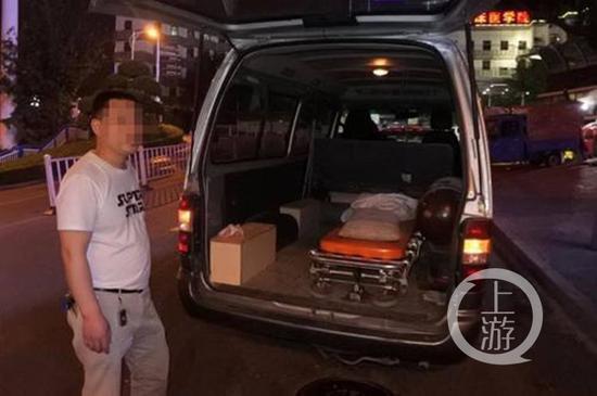 黑色的面包車,里面的座位被拆掉,放上擔(dān)架、輸液架、氧氣罐等……咋一看,這有點(diǎn)像是山寨版的救護(hù)車。但車主說(shuō)起該車的功用來(lái),著實(shí)讓人吃了一驚,“不知道說(shuō)啥好”。
