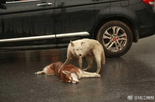 據錢江晚報報道,2017年4月17日,浙江省衢州市衢江區(qū)廿里鎮(zhèn)中興路出現感人一幕:一只狗被汽車撞死橫臥路中,另一只狗不顧危險,嗚咽著蹲守在同伴身邊半個多小時不愿離去。