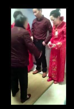 根據(jù)網(wǎng)友提供的一段2分45秒的視頻顯示,一男子站在中間,其兩旁一名短發(fā)女子和一名盤發(fā)女子均身穿紅色旗袍裝,三人同時在跪拜一位銀發(fā)的長輩(視頻中有群眾說是男子父親)。視頻中三人身旁圍著許多群眾,不時有人抄著一口福安本地話,喊著“好!”、“雀。。ㄒ,很好之意)”,“喜糖拿來,紅包包來”……