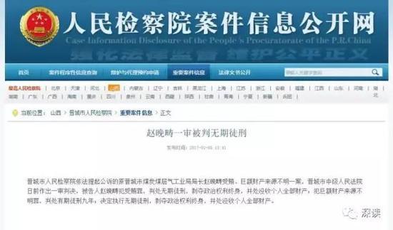 今年1月5日,晉城市檢察院通報(bào),晉城市中院以受賄罪和巨額財(cái)產(chǎn)來(lái)源不明罪,判處趙晚疇無(wú)期徒刑。法院認(rèn)定,扣除房產(chǎn)、黃金和外幣后,趙晚疇受賄2210萬(wàn)元,巨額財(cái)產(chǎn)來(lái)源不明為7277萬(wàn)余元。