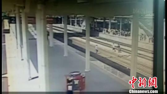 中新網(wǎng)麗水5月18日電(記者 奚金燕 通訊員 斯多林)18日,浙江義烏火車站上演驚魂一刻:一名旅客下車后,走到站臺(tái),突然跳下股道!在這危急關(guān)頭,幾名義烏站客運(yùn)值班員奮不顧身地跳下站臺(tái),迅速將旅客拉上站臺(tái),僅僅用了47秒時(shí)間。