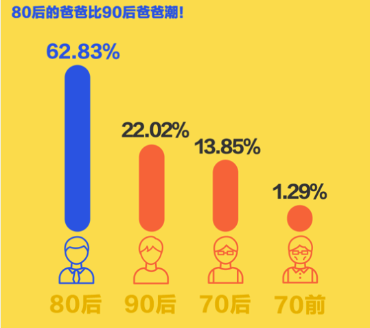 在這些愛(ài)好時(shí)尚的潮爸里,80后超過(guò)六成,隨著越來(lái)越多的90后步入結(jié)婚生子之列,90后時(shí)尚爸爸想必大有增長(zhǎng)勢(shì)頭。