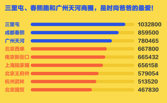 時(shí)尚人士出沒(méi)地點(diǎn)少不了購(gòu)物商圈。三里屯、春熙路和廣州天河商圈,是時(shí)尚爸爸的最愛(ài)。以后去這些地方逛街,除了盯著小鮮肉看,還可以留意下到底有多少潮爸了。