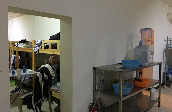 負(fù)責(zé)清理群租房的工作人員表示,群租房的安監(jiān)、消防的確不符合要求,按照規(guī)定每個房屋最多住兩個人,所以上下鋪也不符合規(guī)定,據(jù)粗略統(tǒng)計至少有400多人在地下居住,他承諾,將在兩天之內(nèi)將違規(guī)租住的人員騰退,對不符合消防要求的區(qū)塊進(jìn)行整改!八械牡叵驴臻g用電都不符合規(guī)范,配電箱無警示標(biāo)識,整改通知單是21日之前整改完畢,周一我們?nèi)z查時,會繼續(xù)督促他們整改,到21日之前必須整改完這一塊!