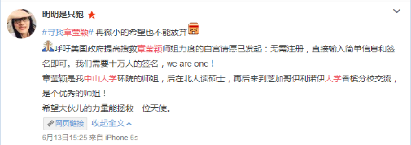 章瑩穎的男朋友以及在國(guó)內(nèi)的同學(xué)也發(fā)動(dòng)國(guó)內(nèi)外的校友資源,匯總更新最新的搜尋信息,協(xié)調(diào)國(guó)內(nèi)與美國(guó)校友的搜尋工作。