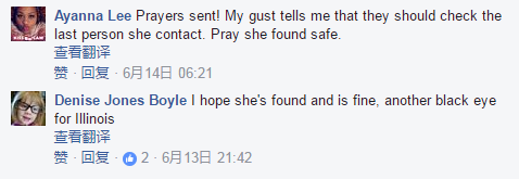 美國(guó)網(wǎng)友Denise Jones Boyle表示,希望她能被找到而且一切都好。