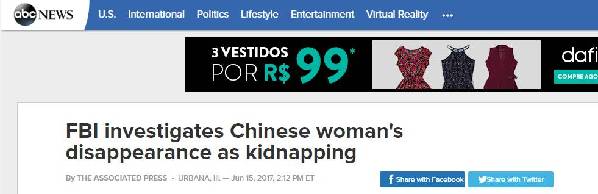 6月15日,新華社援引章瑩穎在美國(guó)的導(dǎo)師的消息,聯(lián)邦調(diào)查局在全國(guó)范圍內(nèi)向所有警局發(fā)出搜索消息,而且在學(xué)校所在的尚佩恩市方圓200英里(約合322公里)范圍內(nèi)的主要城市戶(hù)外廣告牌上發(fā)布有關(guān)章瑩穎的搜尋通告。警方正通過(guò)調(diào)閱章瑩穎的電話(huà)記錄尋找線(xiàn)索,也試圖通過(guò)優(yōu)步這類(lèi)網(wǎng)約車(chē)公司查看她是否用這些打車(chē)軟件叫車(chē)。
